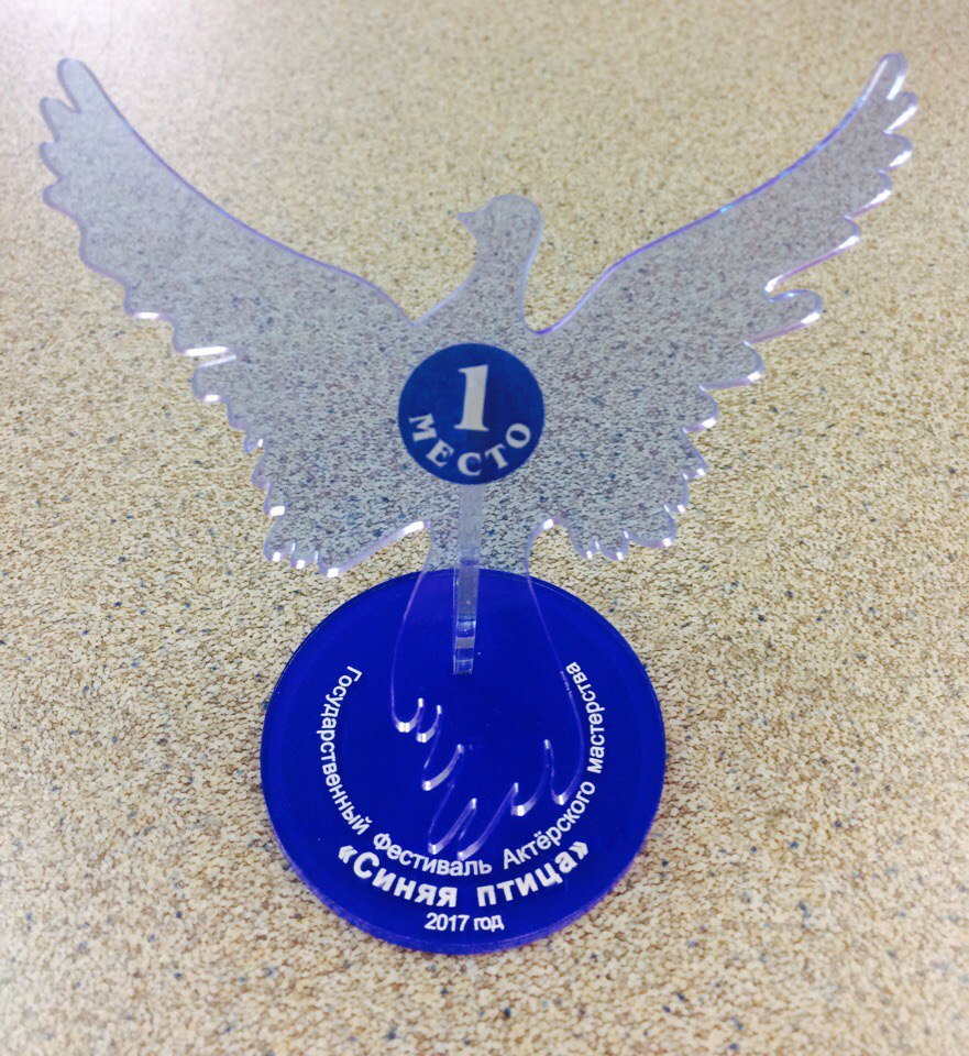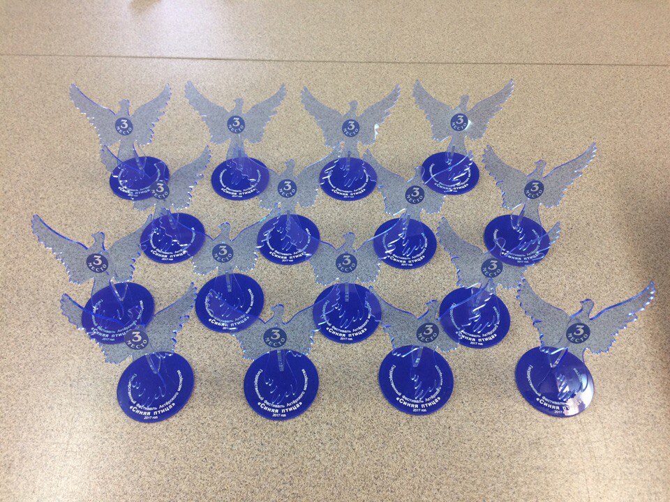 Выполнили заказ для Государственного фестиваля  актерского мастерства "Синяя птица", а именно: при помощи лазерной резки и флуоресцентного стекла получились такие замечательные синенькие птички