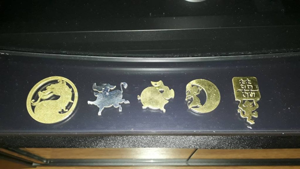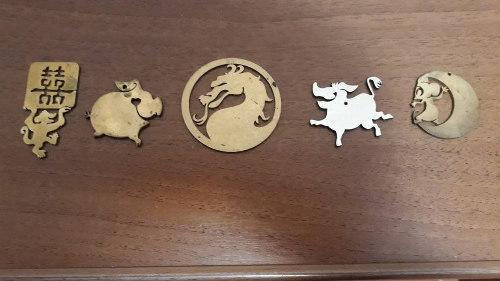 Все эти изображения Восточного гороскопа сделаны электроэрозией. Также эта технология дает возможность получить отверстия нужной формы и конфигурации, различные инструменты, и обеспечивает производство качественного электропечатания и резку любых деталей.