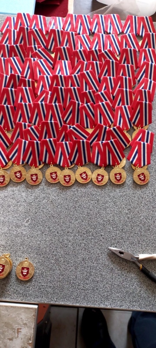 Здравствуйте. Начало недели. Заканчиваем большой заказ на 200 медалей. Все сделано нами, вплоть до упаковки и печать удостоверений.
