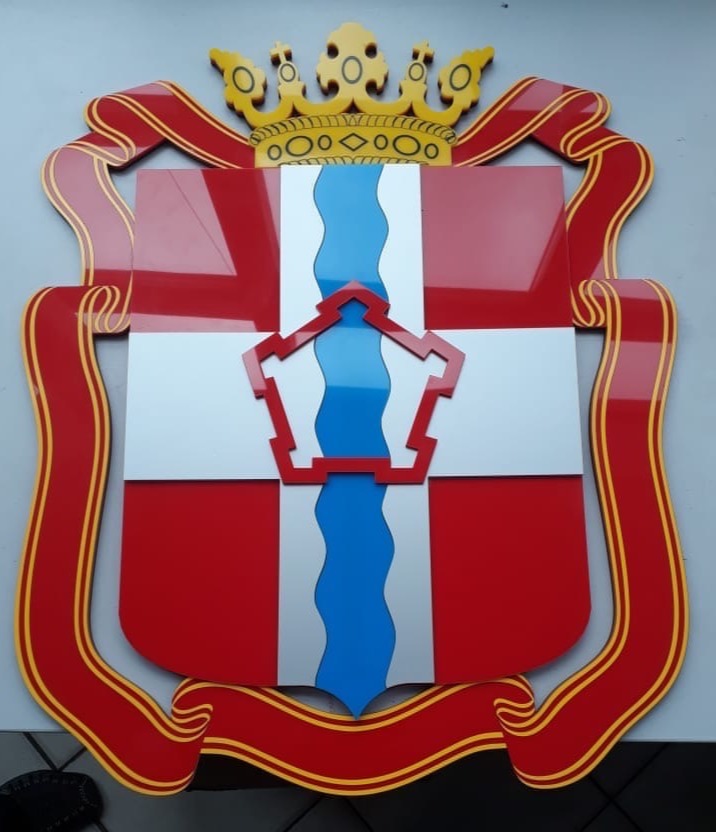 Изготавливаем гербы Омской области в новом варианте. Цветное оргстекло, прямая гравировка, инкрустация, объём.