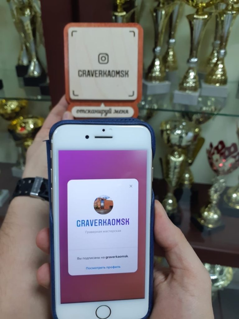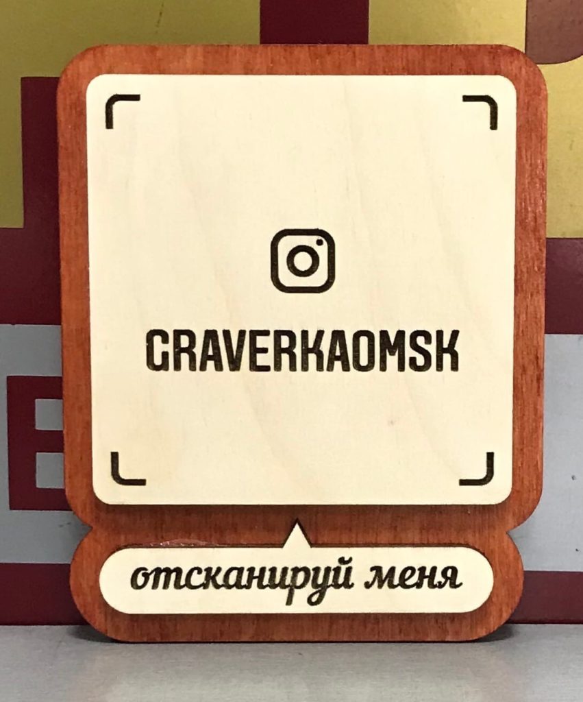 В связи с этим, запустили в производство Instagram-визитки из фанеры, которые считывается при помощи функции "сканирование QR-кода".