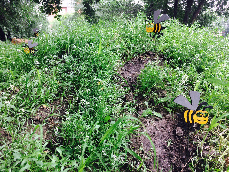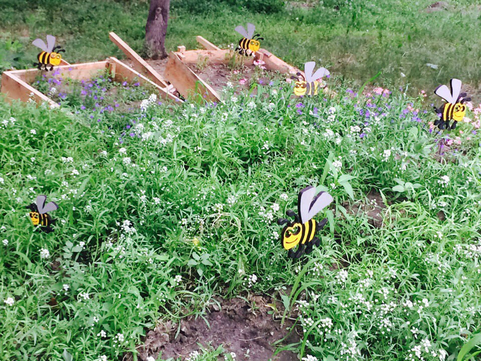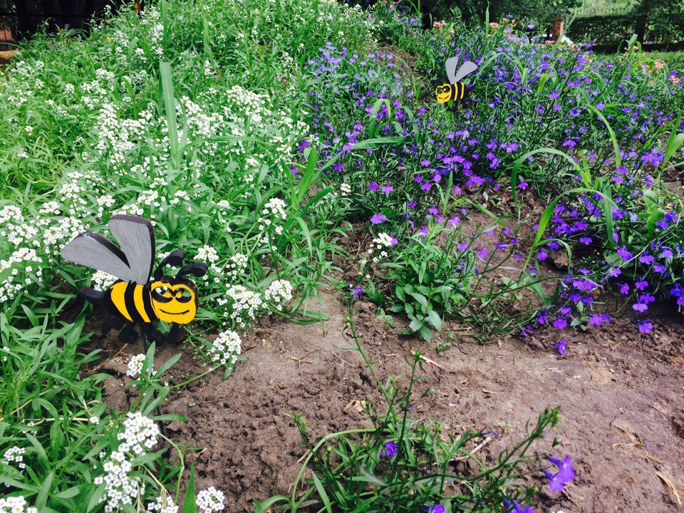 ?В прошлом году, летом, мы изготовили вот таких замечательных пчёл, а после украсили ими свою территорию!