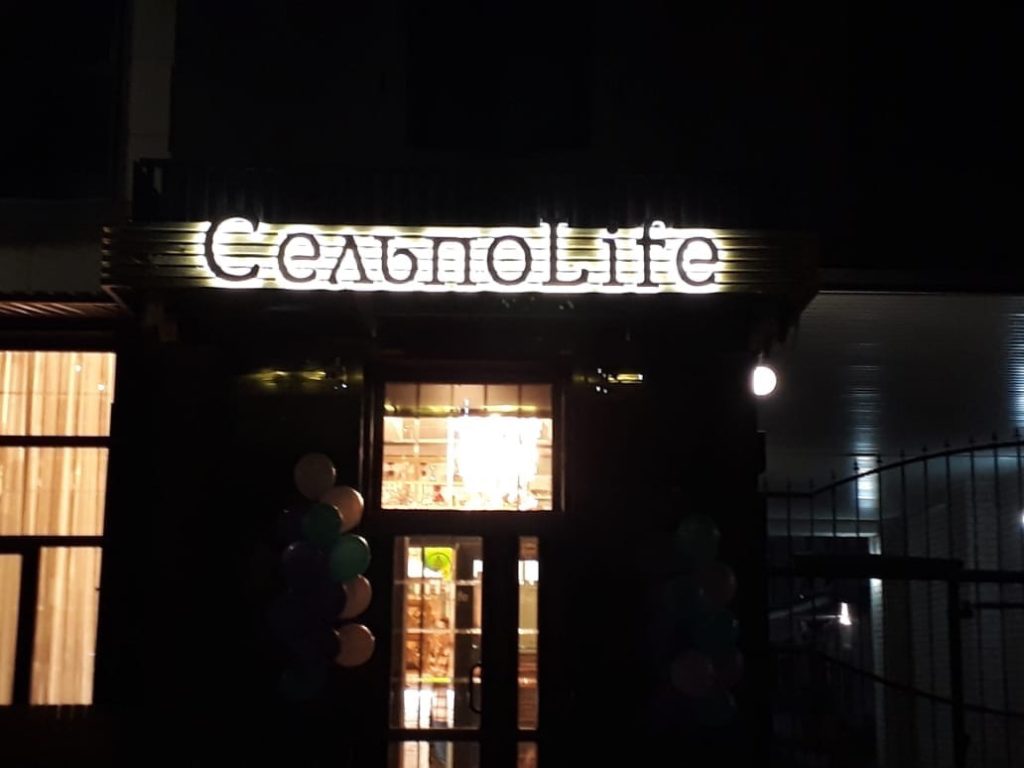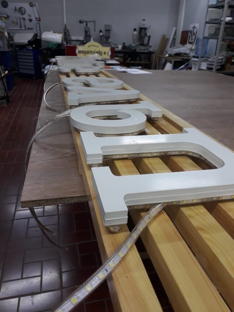 Одна из крупных работ нашего предприятия. Вывеска - козырек с светящимися буквами.