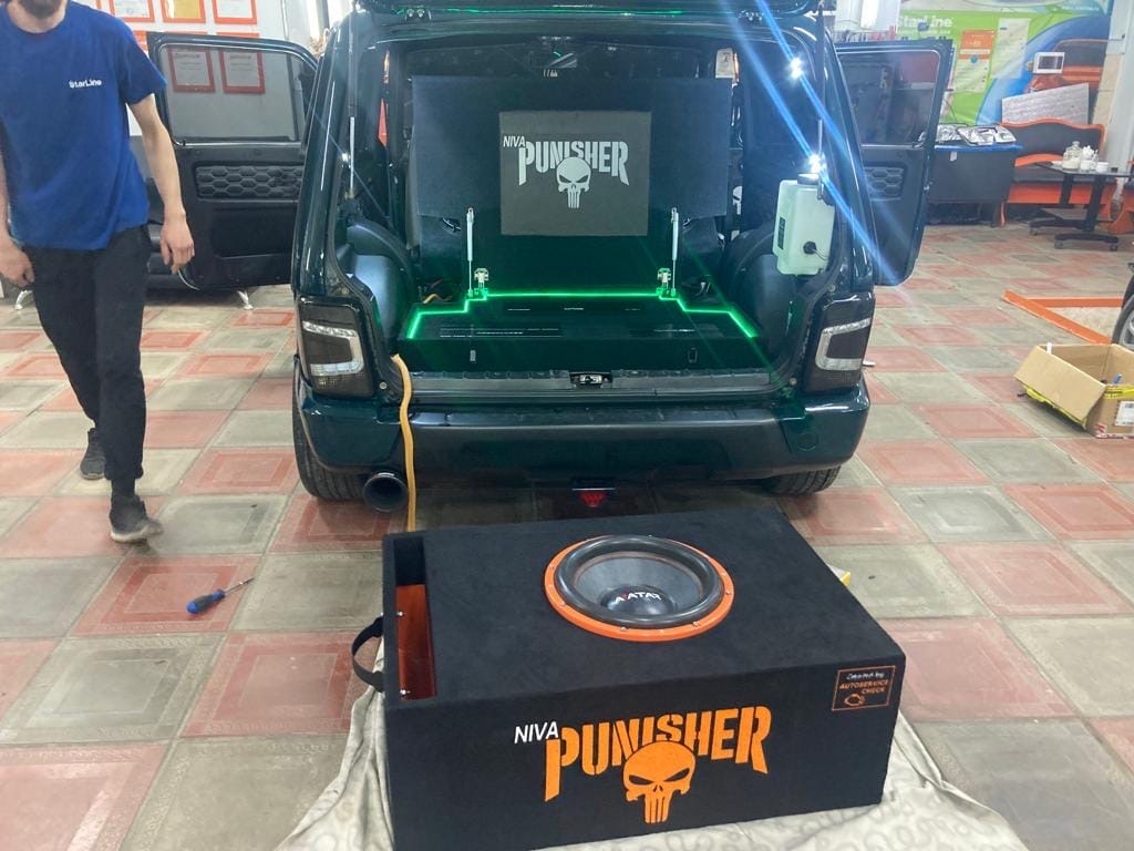 Вот такую вышивку мы сделали на сабвуфер в машину. Автотюнинг мы делаем разный. Хотите индивидуальности, обращайтесь.