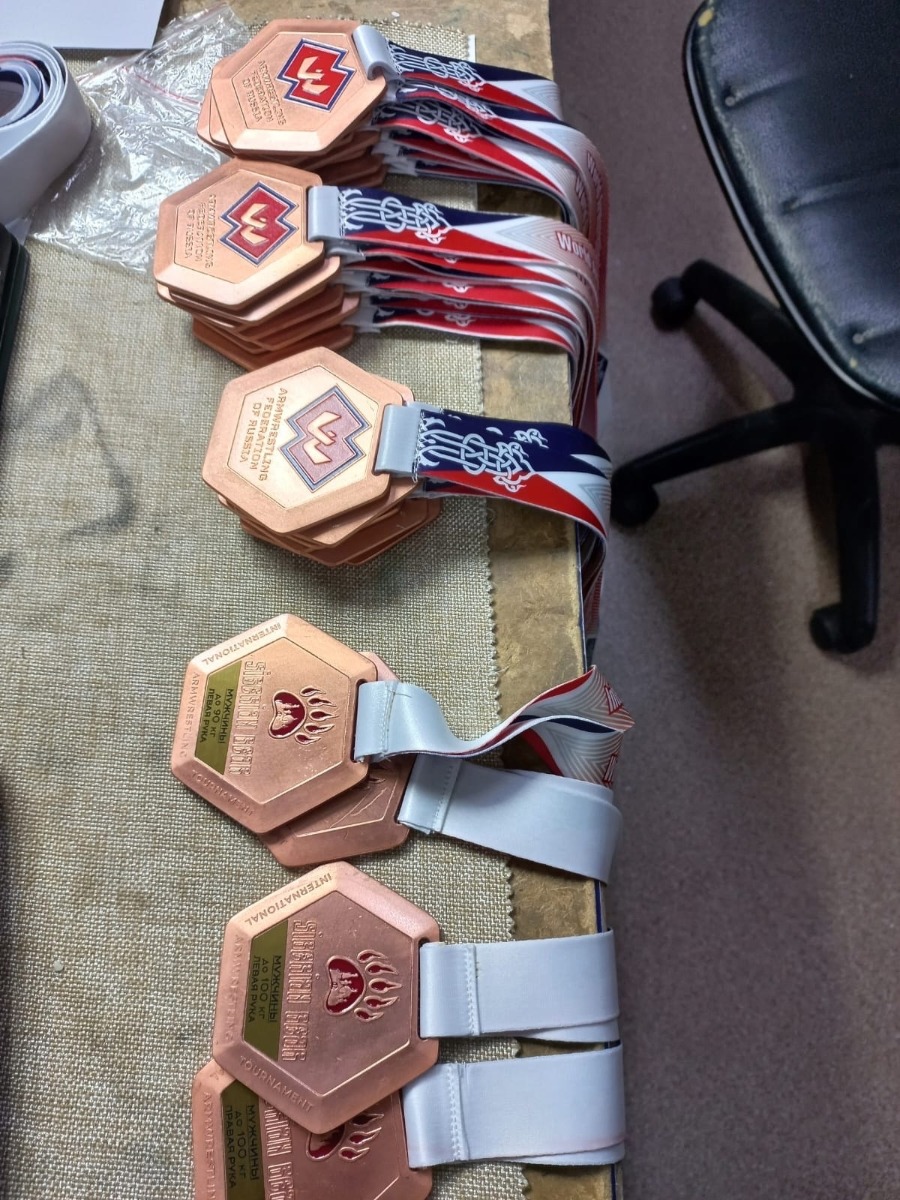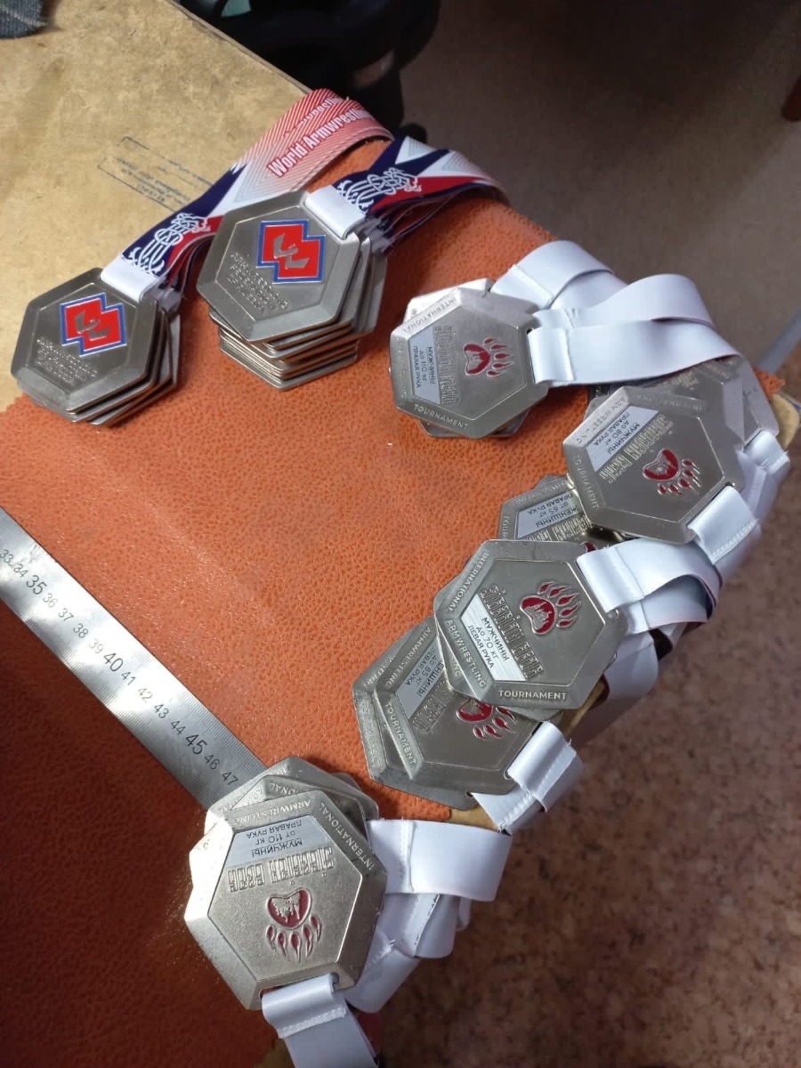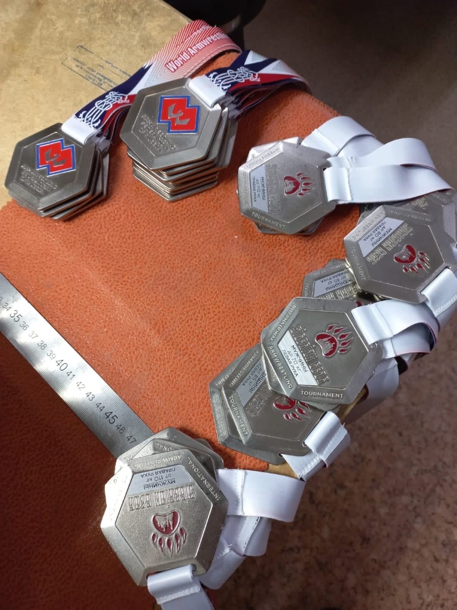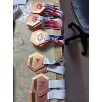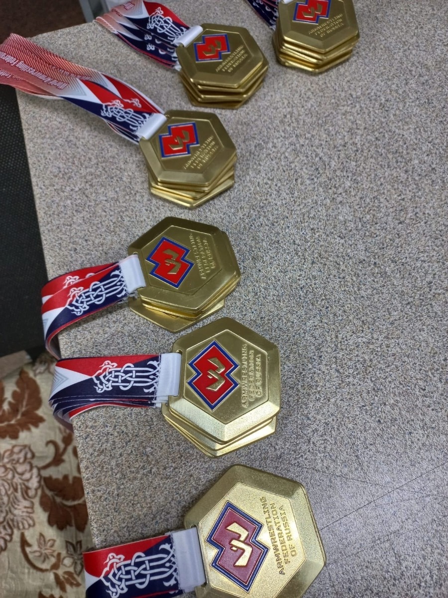 Не забывая о работе. На фото очередной заказ на спортивные медали.