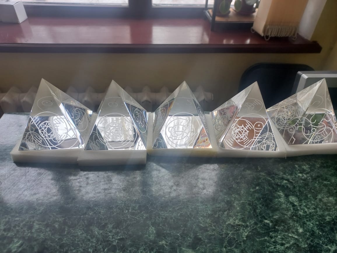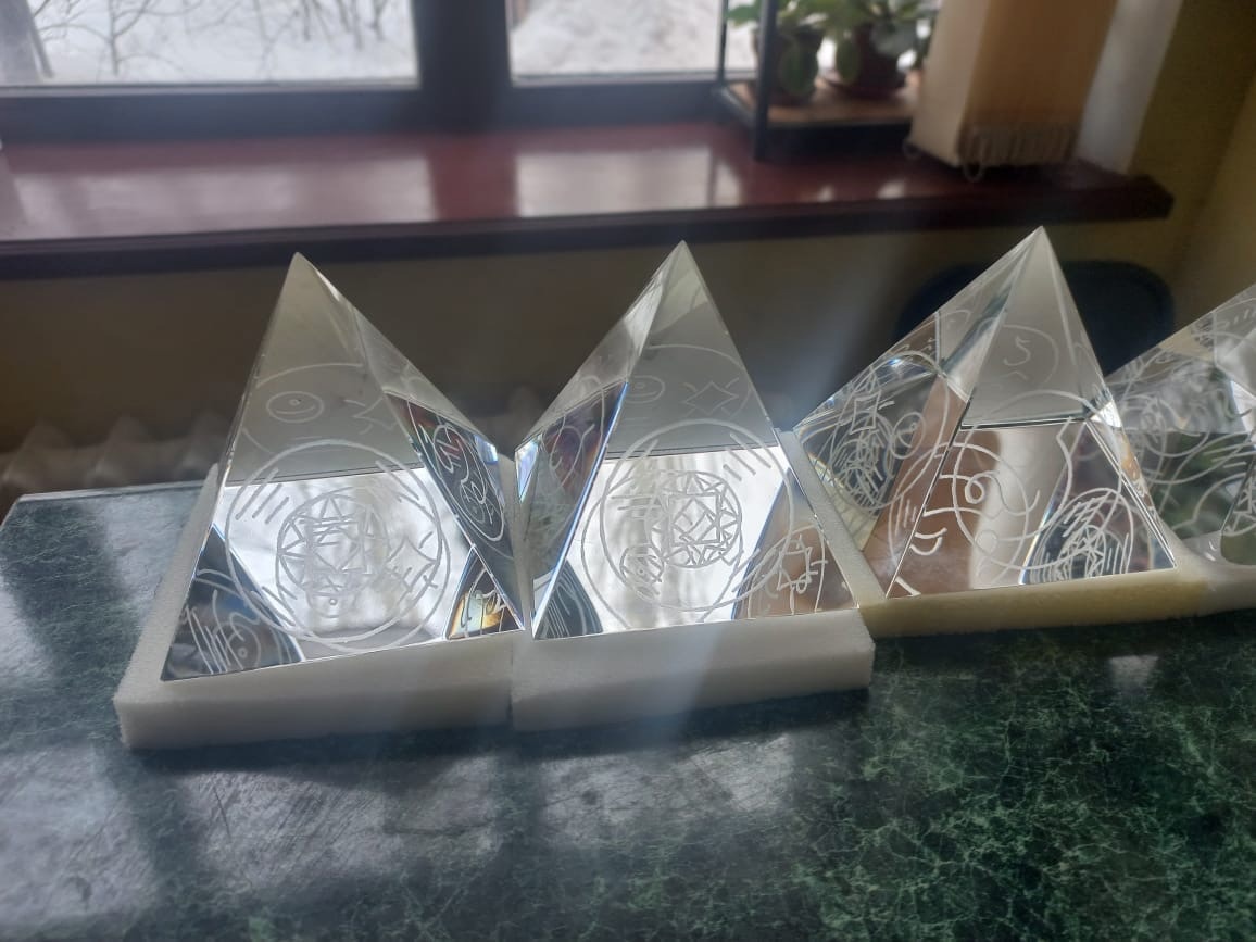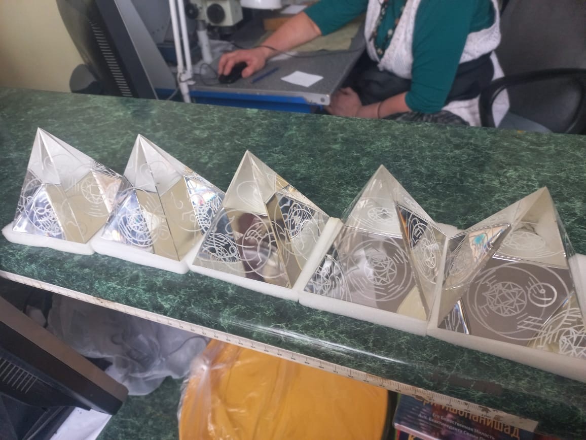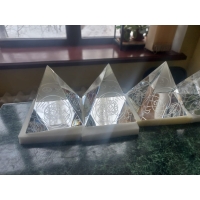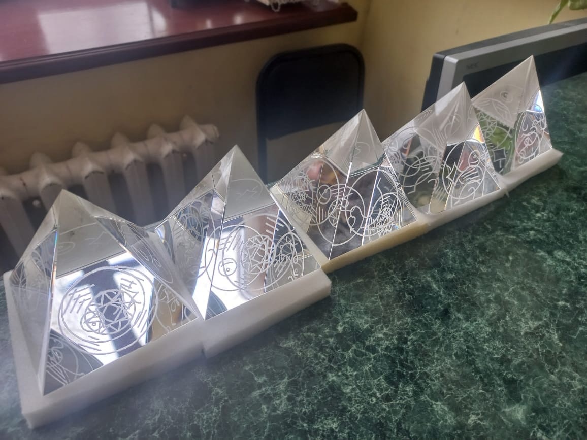 Остальные фото примеры ручной гравировки по стеклянным пирамидам.