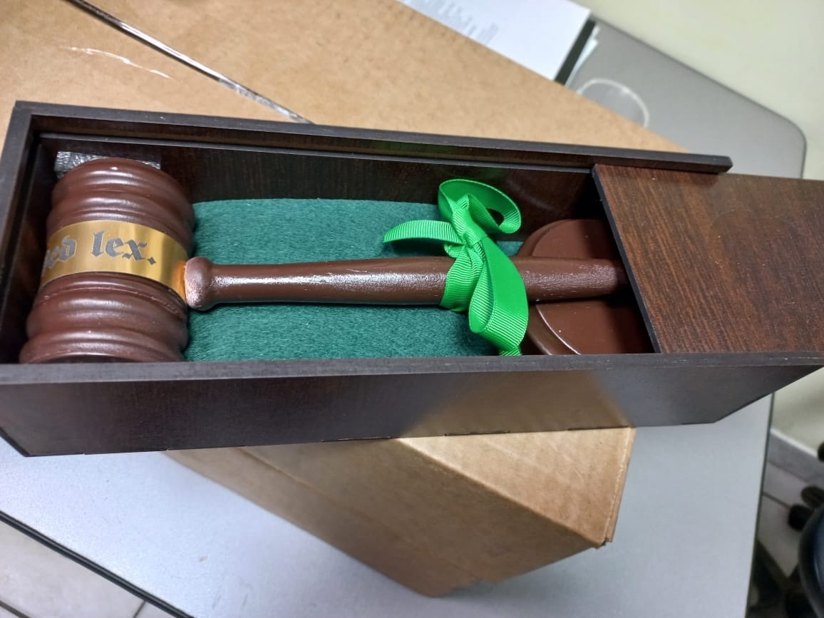 Наше предприятие часто персонализирует свою продукцию для своих клиентов, будь то печать, штамп или что-то ещё. На фото печать, судейский молоток для примера.