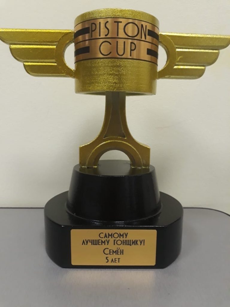 Кубок вырезан лазером. Шильд на металлической пластине залит смолой.