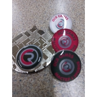 Пример лазерной гравировки на браслетах и значки залитые смолой.