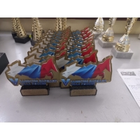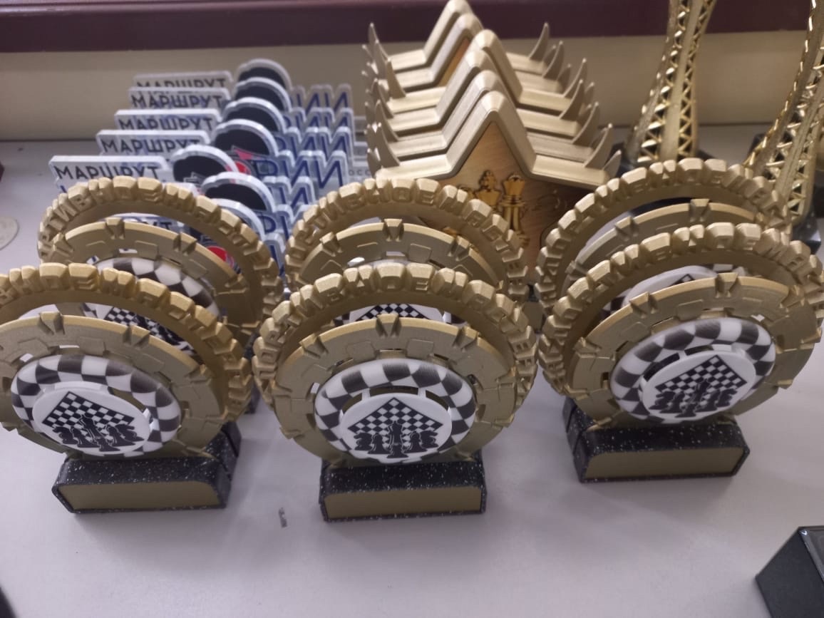 Здравствуйте! Продолжаем стройными рядами, как на параде выстроились призы и кубки для награждений участников. Гравировка на оргстекле и термоперенос на трикотажные футболки дополняют наш фотоотчет.