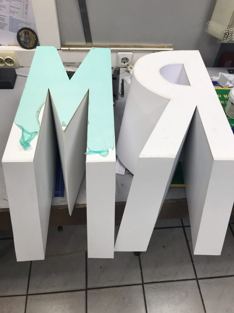 Мы уже давно занимаемся изготовлением вывесок, табличек, наружной рекламы, в том числе объёмных слов и букв. Когда с нами связались и рассказали о происшествии, мы тут же выехали на место, сняли все размеры и в кратчайшие сроки изготовили недостающие буквы, а после передали их в руки ответственным людям для размещения на монументе