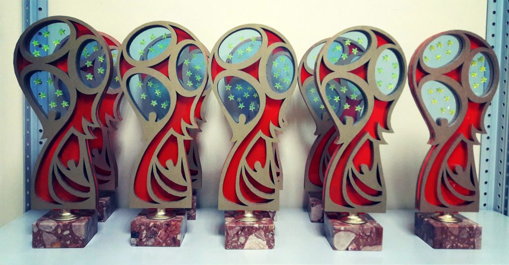 А для всех тех, кто хочет быть ближе к тематике Чемпионата мира по футболу, мы изготовили специальные кубки, напоминающие эмблему Чемпионата мира по футболу FIFA 2018. Теперь, благодаря нашей атрибутике, Вы можете провести свой мини-Чемпионат города или области, Чемпионат округа или может быть вовсе, Чемпионат по футболу между дворовыми командами, главным призом которого будет — Кубок в виде эмблемы Чемпионата мира по футболу FIFA 2018!