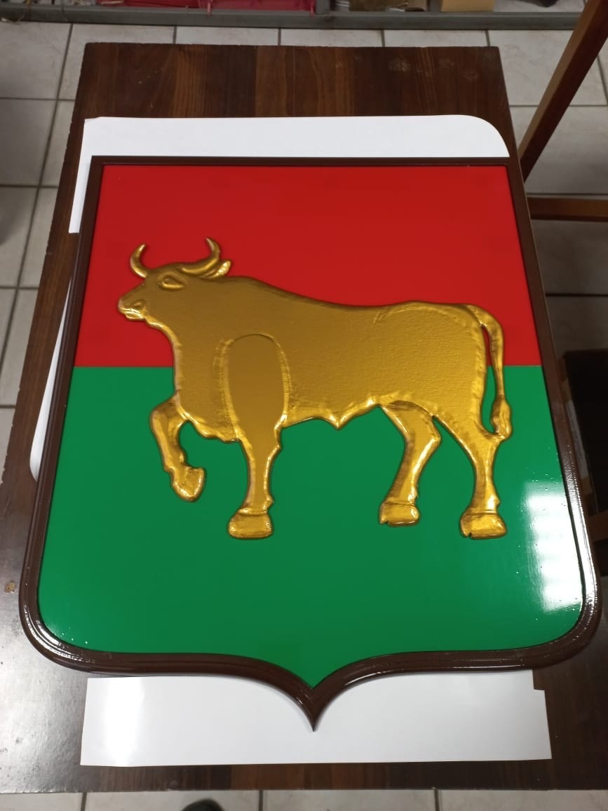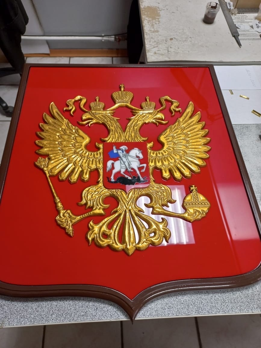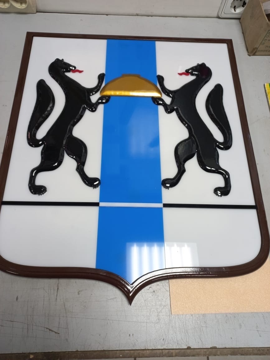 На фото, работа ручного гравёра и завершенные изделия(герб РФ, герб Новосибирской обл., герб г. Куйбышев Новосибирской обл.)
